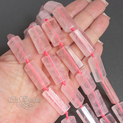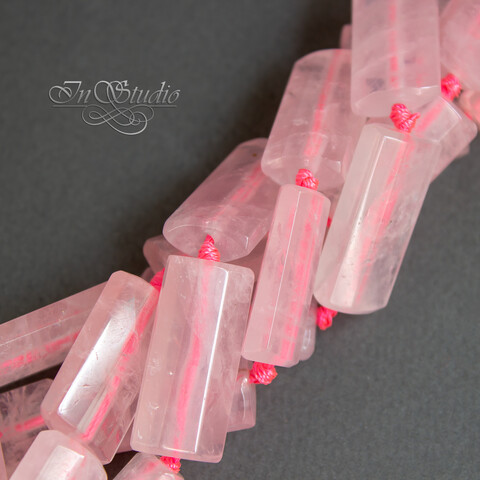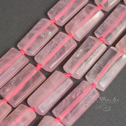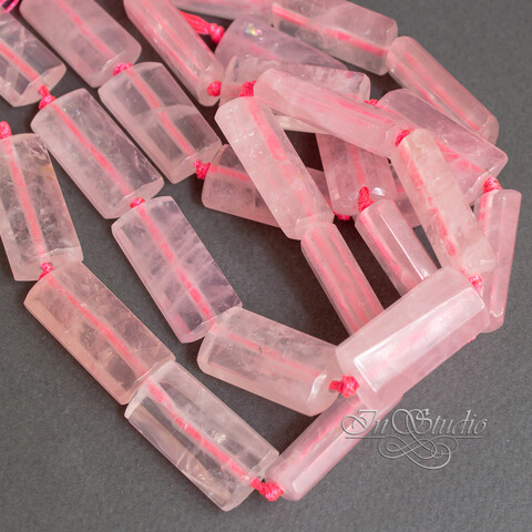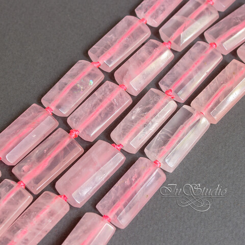 Крупные прямоугольные плоские бусины из натурального розового кварца.