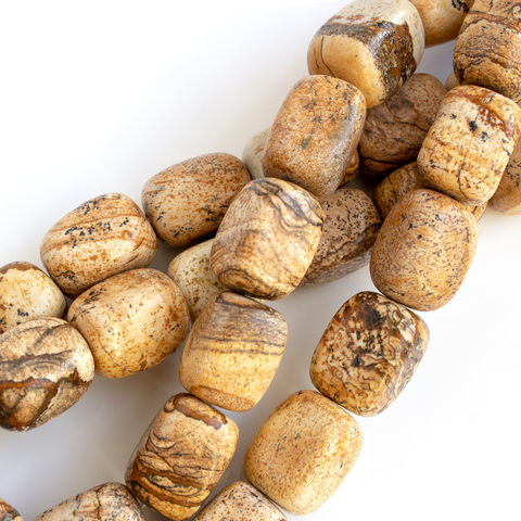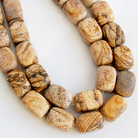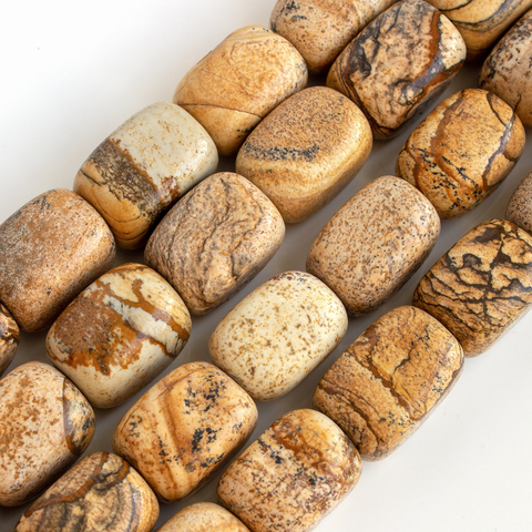 Крупные прямоугольные бусины из натуральной пейзажной яшмы.