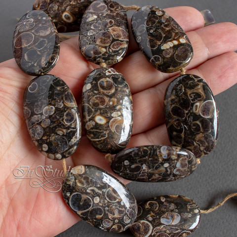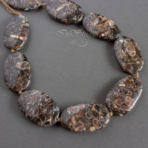 Очень крупные плоские бусины овальной формы из натурального черепахового агата.