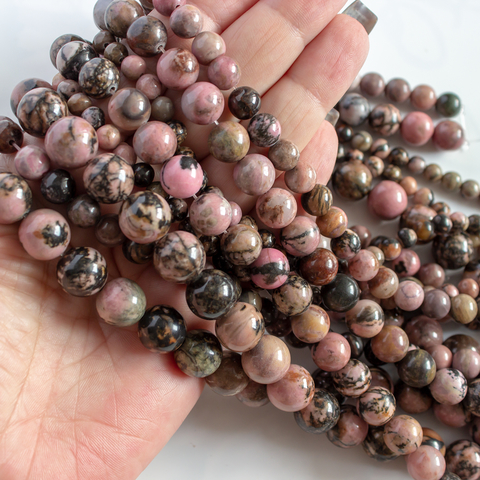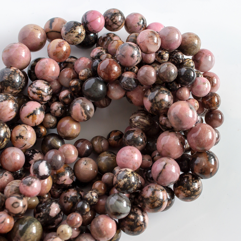 Родонит натуральный 6 8 10 12 мм бусины шарики