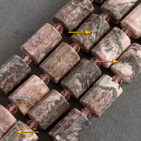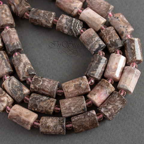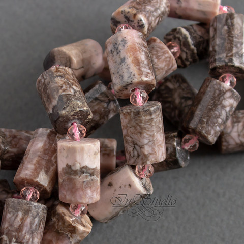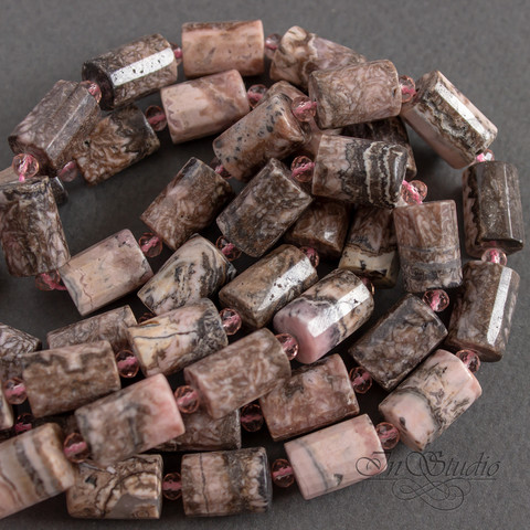Бусины цилиндры с огранкой из натурального родохрозита.