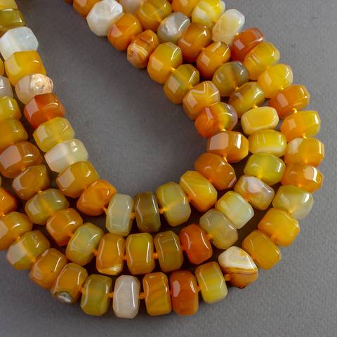 Содержит микс цветов светло рыжых и медовых оттенков с характерными для агата полосками.