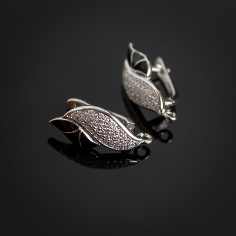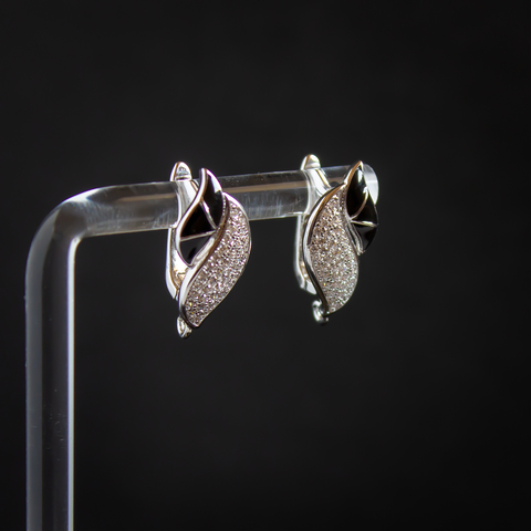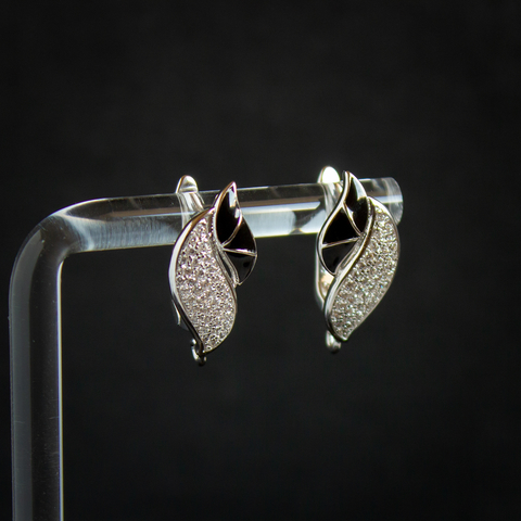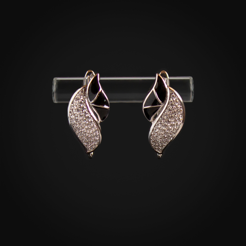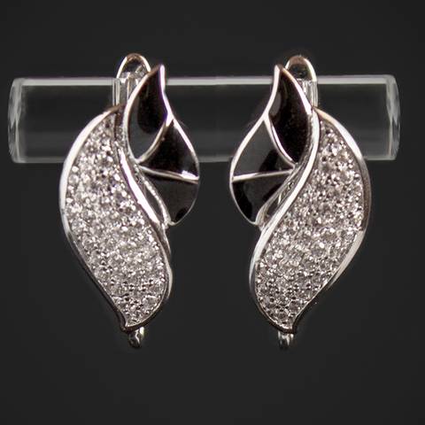 Основы для сережек инкрустированы фианитами и декорированы черной эмалью.