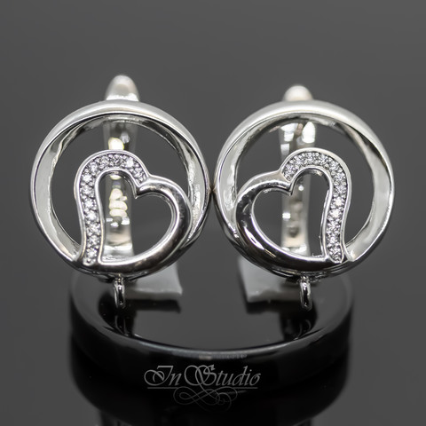Швензы Сердце с фианитами в круге родиевое покрытие по латуни.