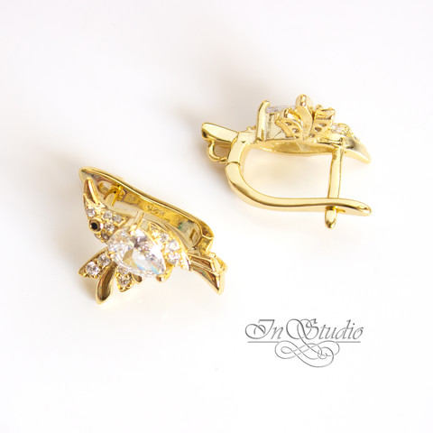 Швензы ПТИЦЫ птички с фианитами позолоченные с петелькой-колечком для крепления подвески.