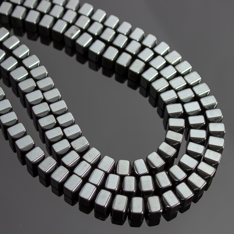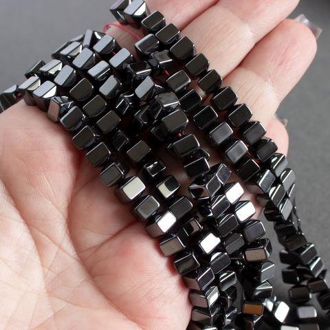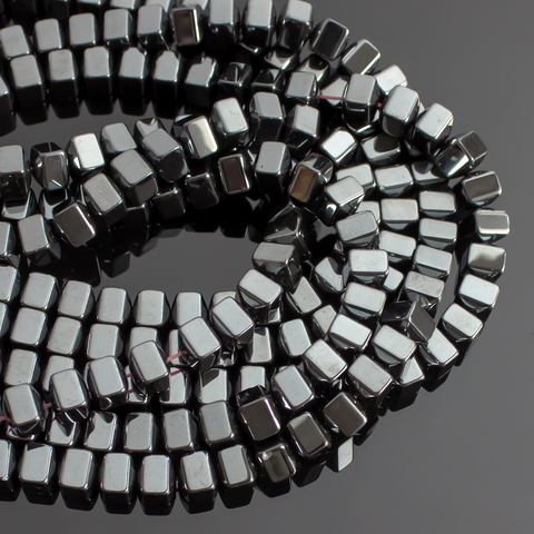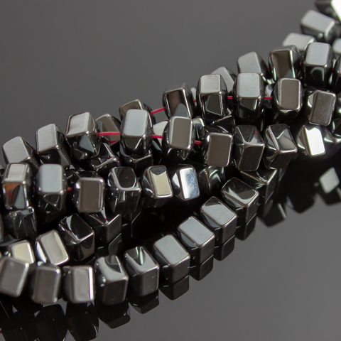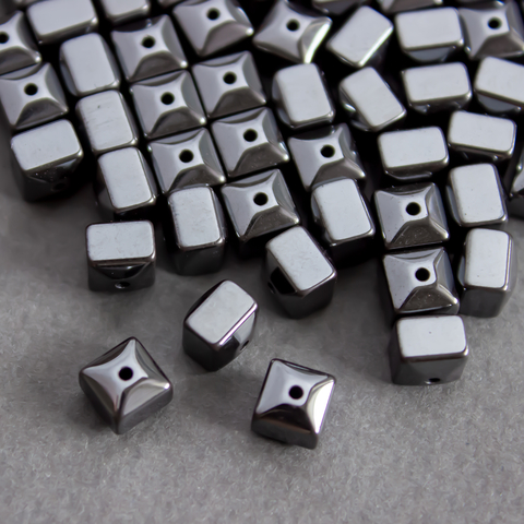 Бусины натурального гематита в форме куба с выпуклыми гранями.