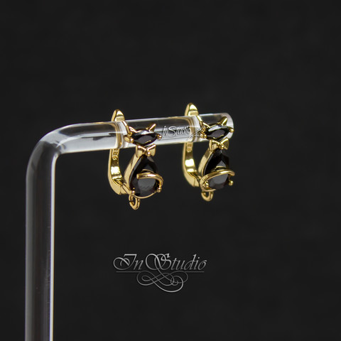 Основы для сережек инкрустированы вставками из черных фианитов.