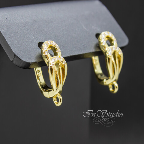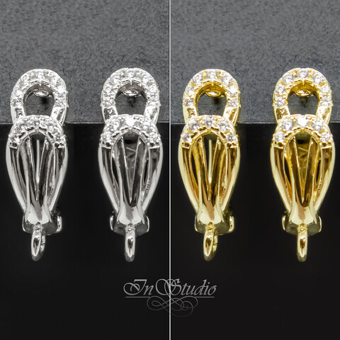 Основы для сережек инкрустированы фианитами.