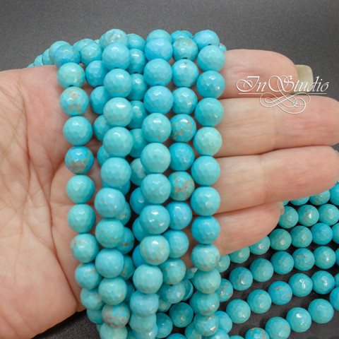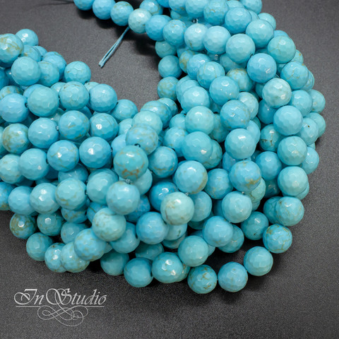 Бусины шарики с огранкой из ПРЕССОВАННОЙ БИРЮЗЫ.