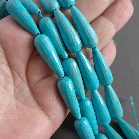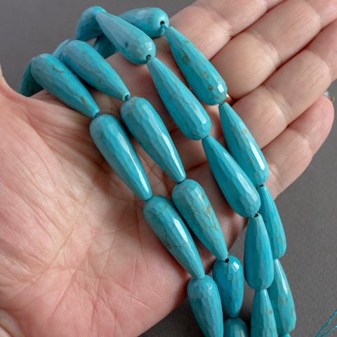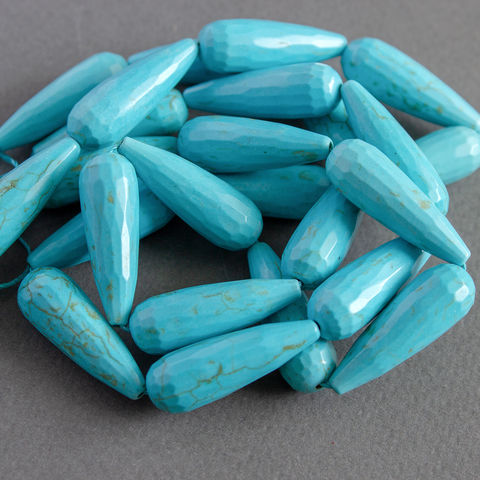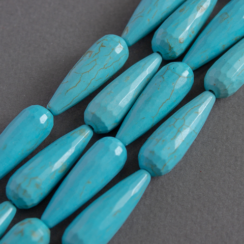 Длинные бусины капли с огранкой из прессованной бирюзы.
