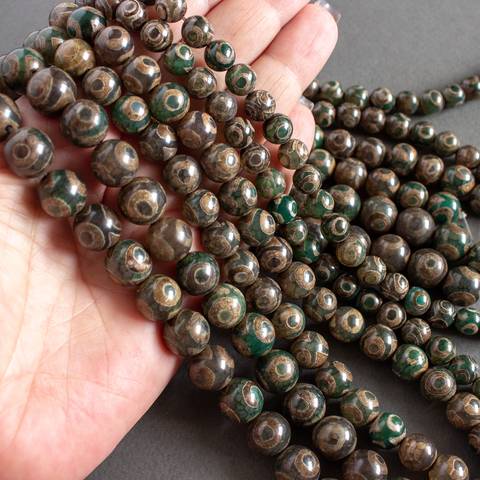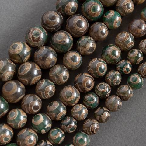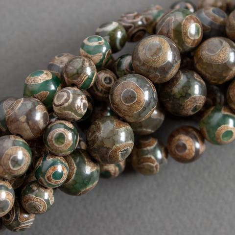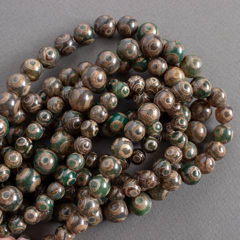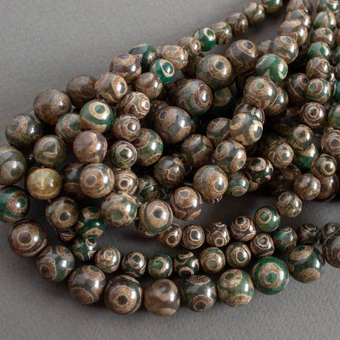Агат Дзи 3 глаза 8 10 12 мм коричнево зеленые бусины