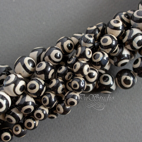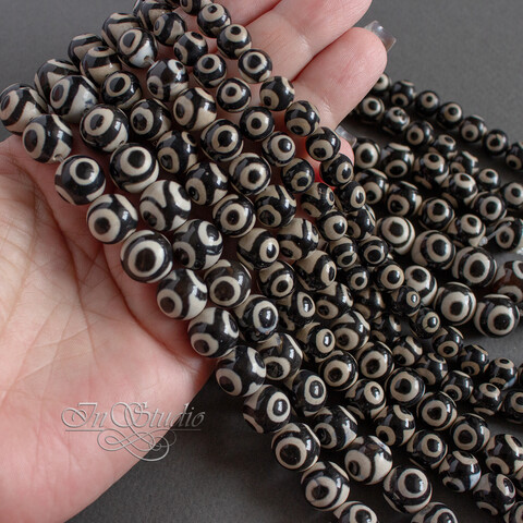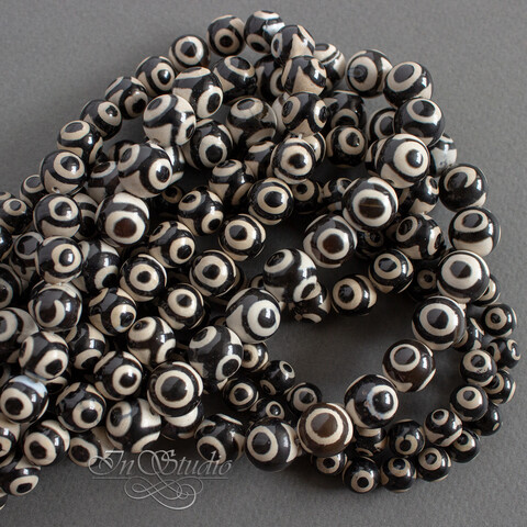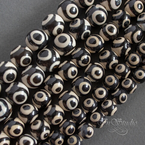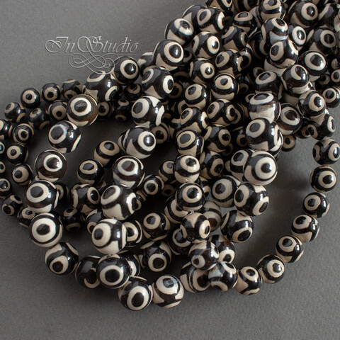 Агат Дзи 3 глаза 10 мм черно белые бусины