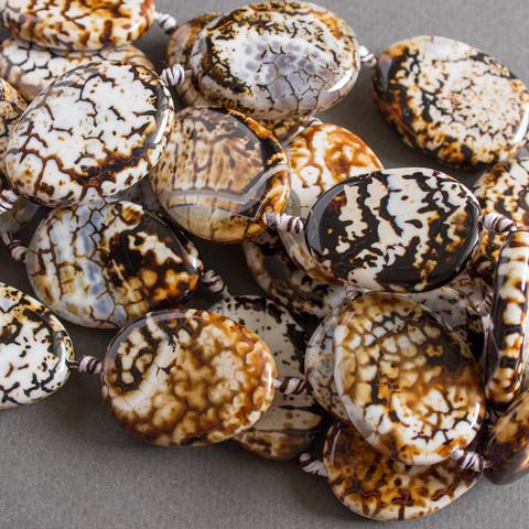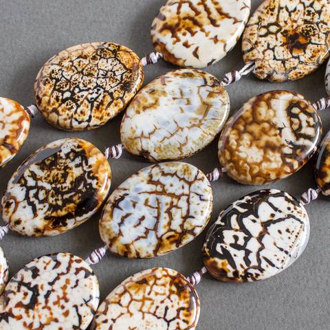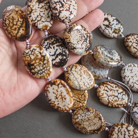 Леопардовый агат - большие плоские бусины из натурального камня овальной формы.