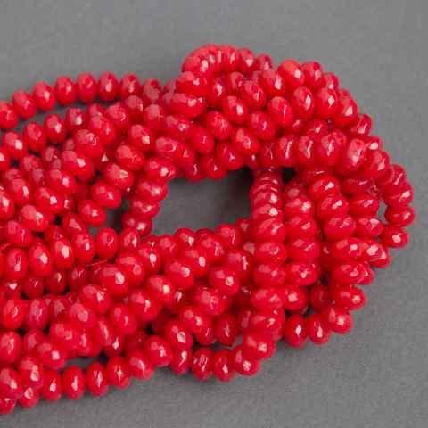 Коралл рондель с огранкой 6х4 мм красные бусины