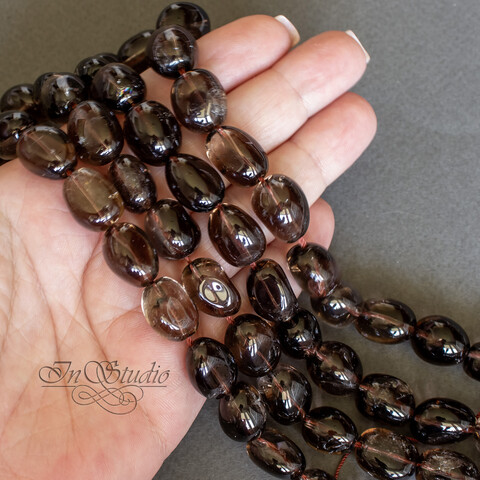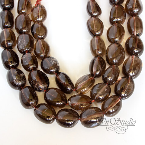 Крупные бусины из натурального ПРИРОДНОГО раухтопаза - дымчатого кварца свободной формы - галтовка фри-форм.