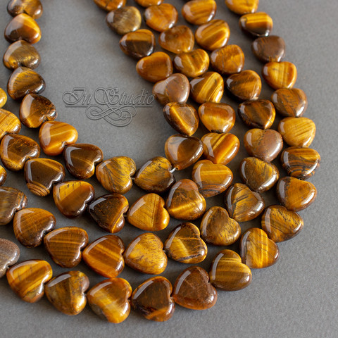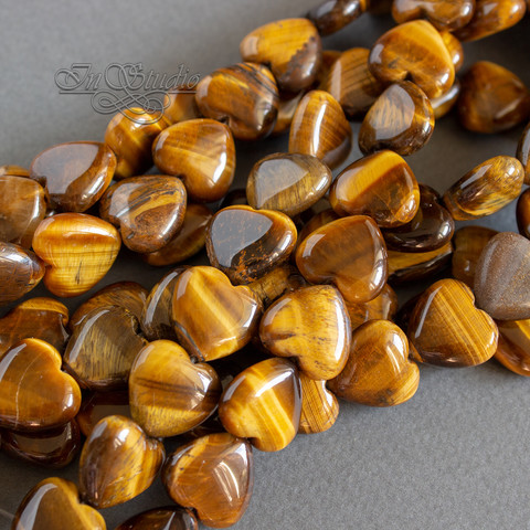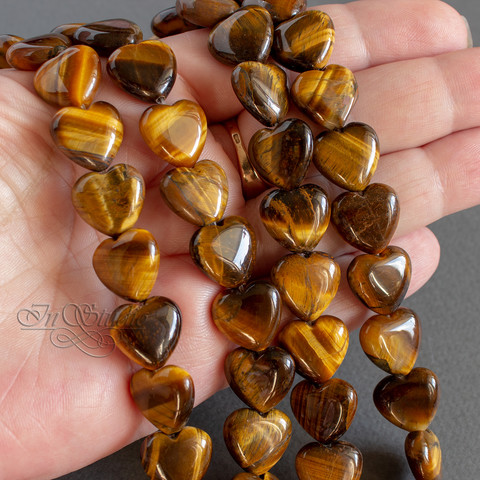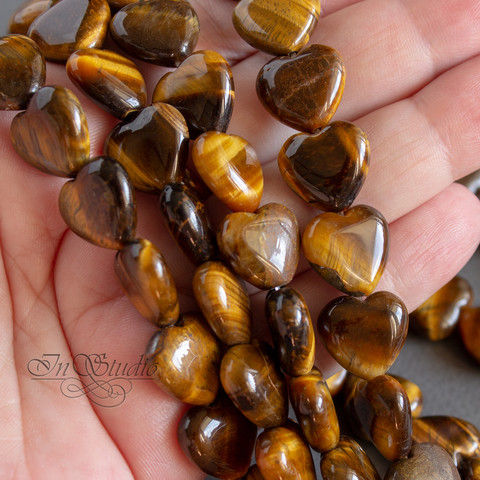 Бусины в виде сердца из натурального тигрового глаза.