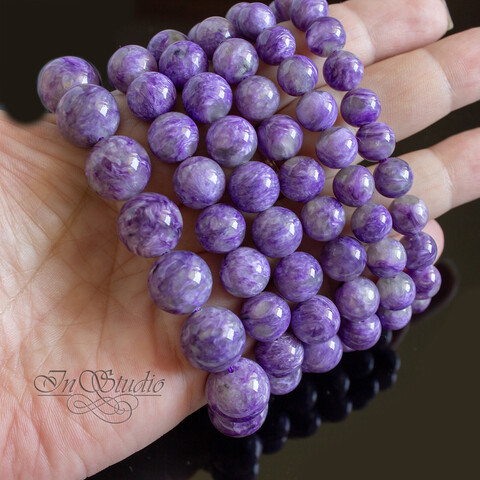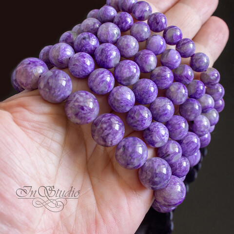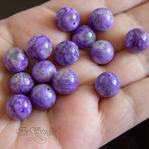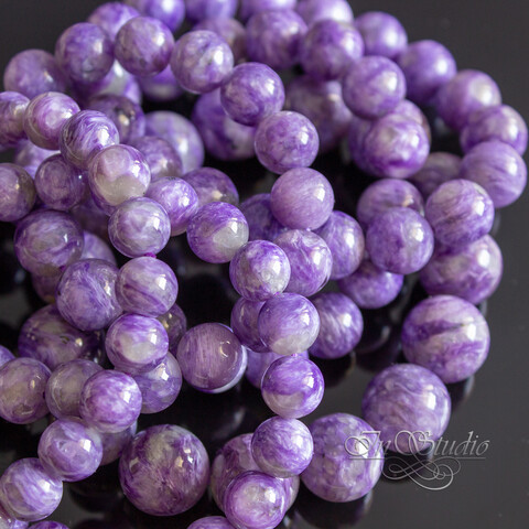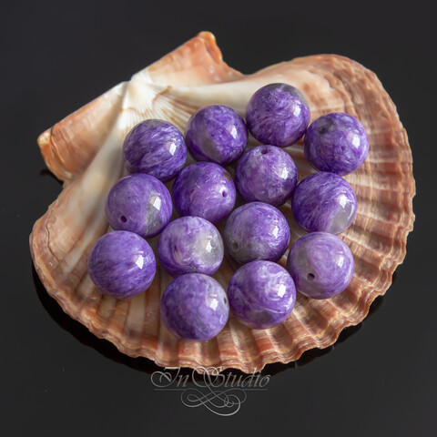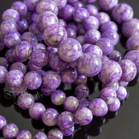 Бусины шарики из натурального природного чароита люкс качества - класс Экстра.