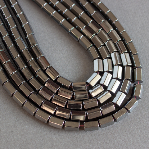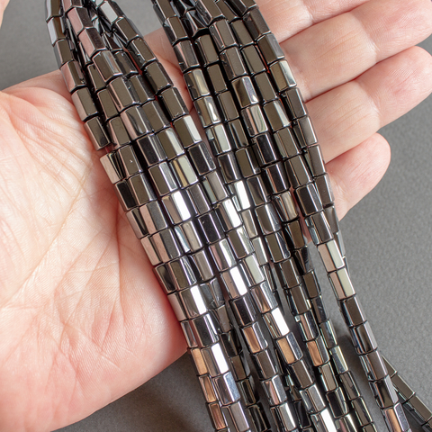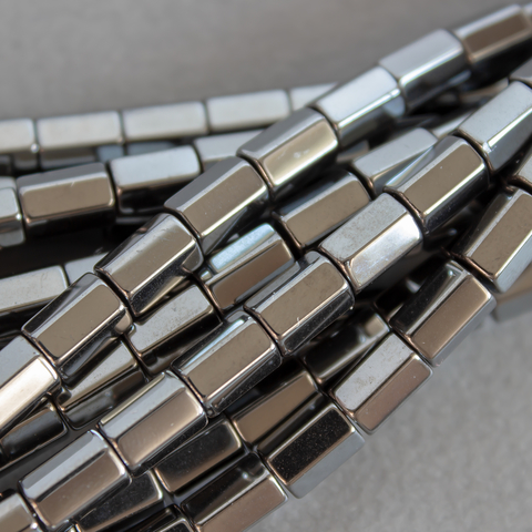 Гематит трубочки шестигранные 8х5 мм серебристые бусины