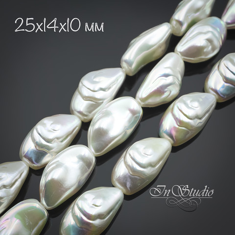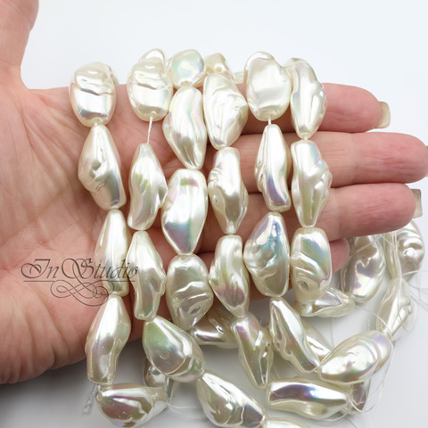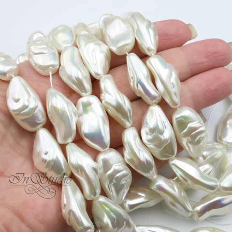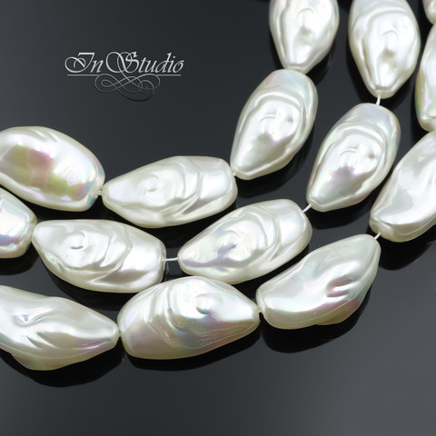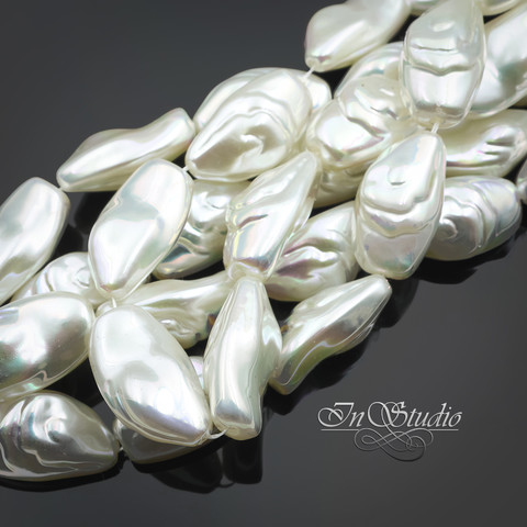 Жемчуг искусственный Барокко. Имитация натурального барочного жемчуга. Крупные бусины фри форм - бусины со сквозным сверлением. Цвет белый, молочный с легкой иризацией "хамелеон".
