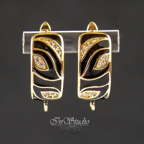 Швензы для сережек КЭРИС позолота черная эмаль фианиты