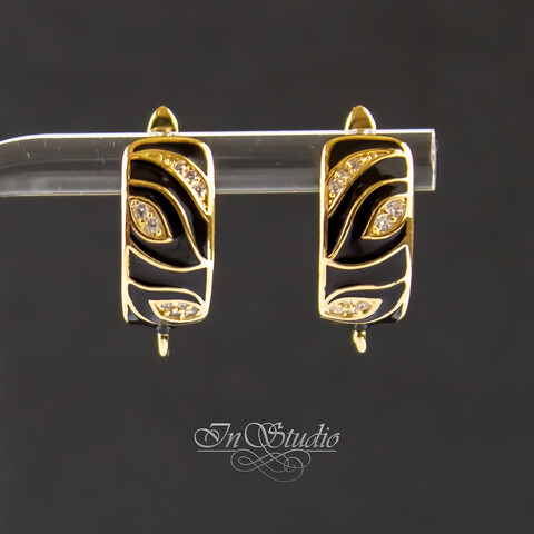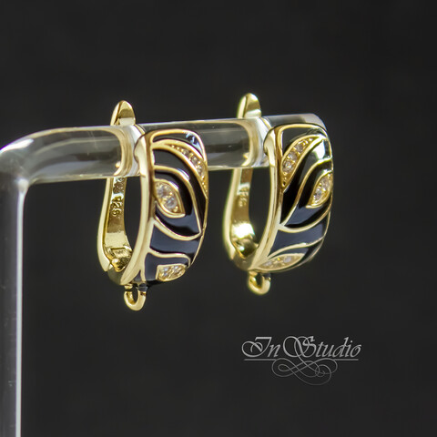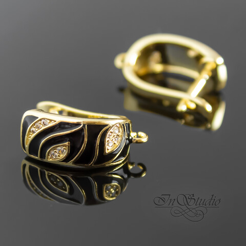 Швензы КЭРИС для серег позолоченные с черной эмалью и фианитами. Английский замок.