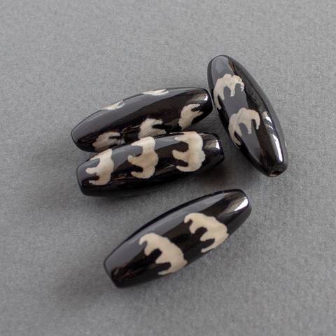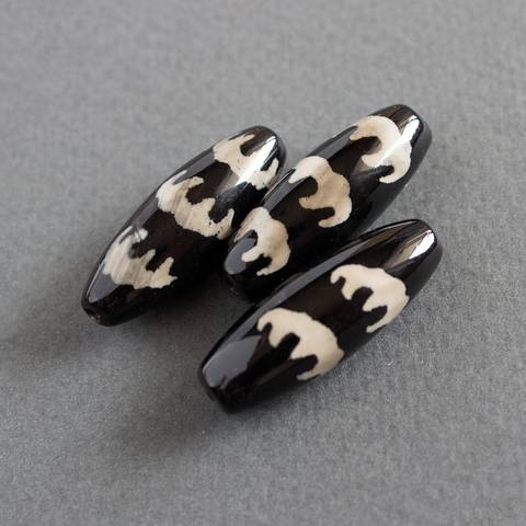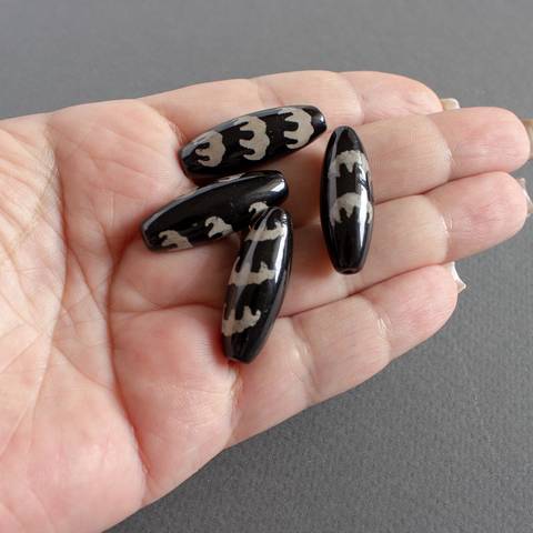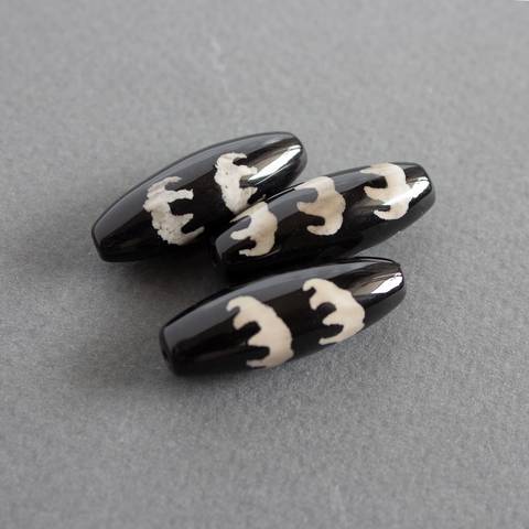 Цвет дзи черный, с белым рисунком силуэтов пяти летучих мышек.