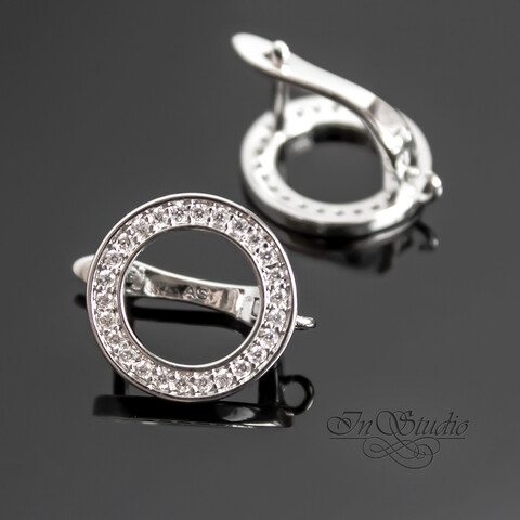 Швензы "КЛАРИС " для сережек с родиевым покрытием и инкрустированы эффектными фианитами (цирконами).