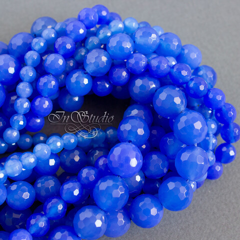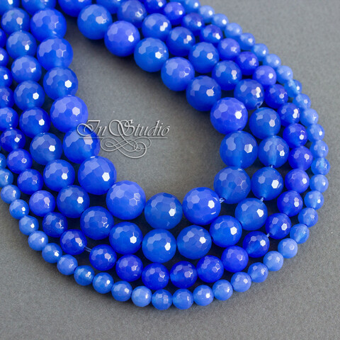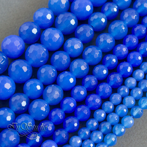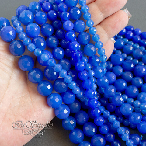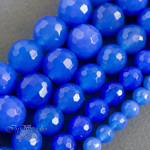 Халцедон синий голубой 6 8 10 мм яркие бусины с огранкой