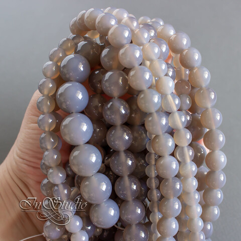 Бусины натурального серого агата.