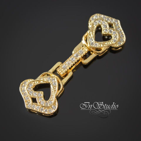 Замочек для украшений СЕРДЦА позолота с фианитами