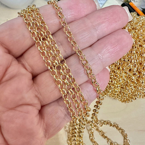Цепочка Ролло позолоченная с круглыми звеньями.