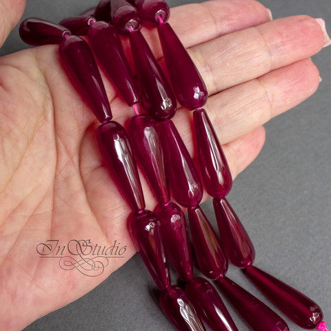 Халцедон рубиновый 30 мм бусины капли с огранкой