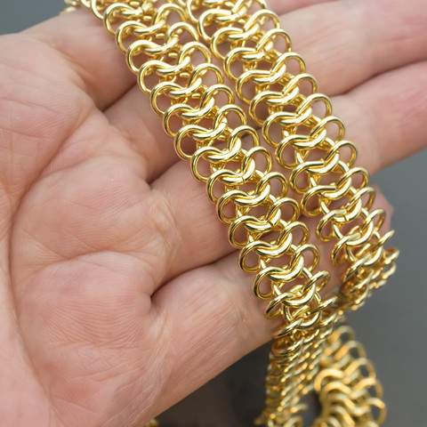 Крупная позолоченная цепочка шириной 14 мм КОЛЬЧУЖНОЕ классическое плетение.