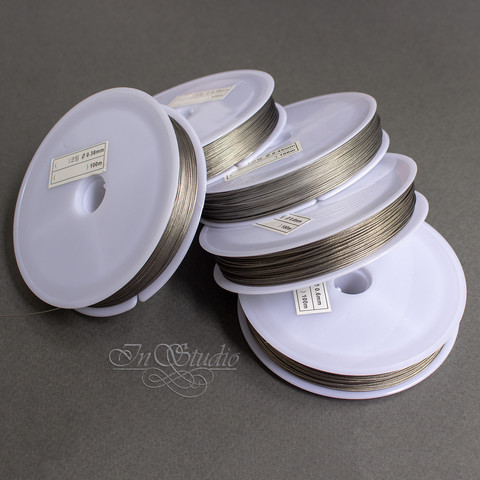 Ювелирный тросик, ланка или ювелирная струна - серебристого (стального) цвета.