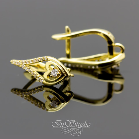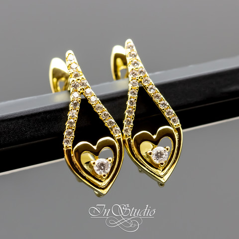 Швензы Лана позолоченные инкрустация фианитами