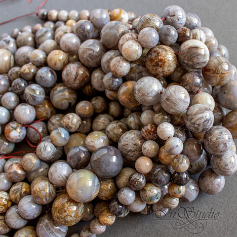 Агат Бамбуковый 6 8 10 12 14 16 мм бусины шарики