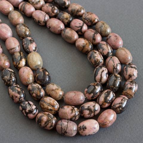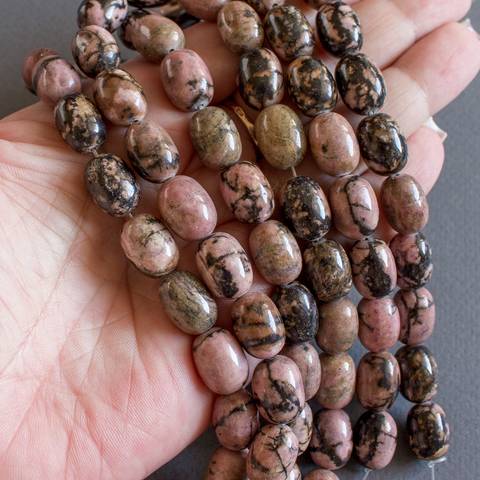Натуральный родонит 14х10 мм овальные бусины