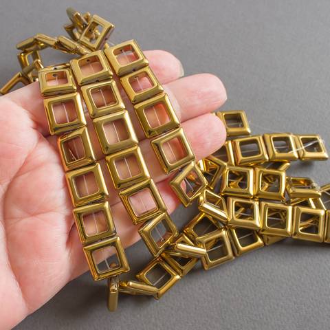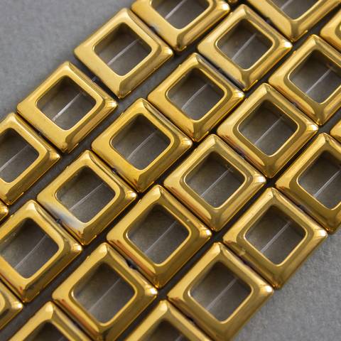 Гематит золотистый бусины 14 мм квадратная рамка