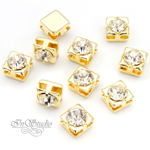 Бусина квадратная 7 мм с фианитами позолота