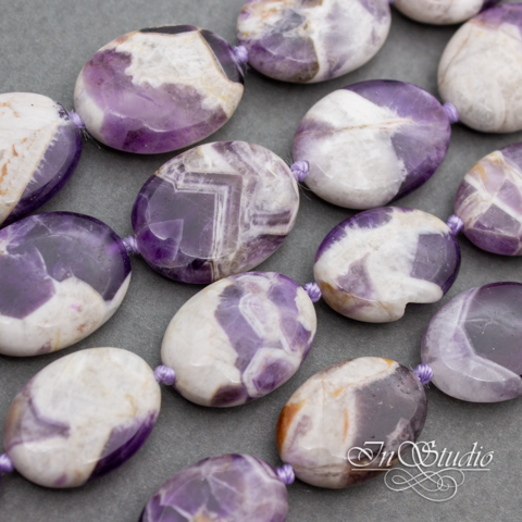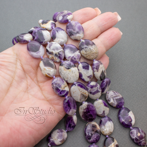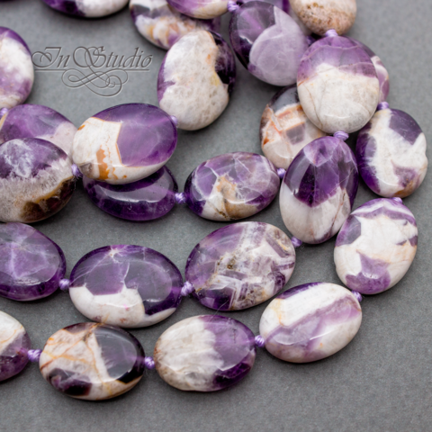 Аметист Казахстан 18 и 20 мм фиолетовые овальные плоские бусины