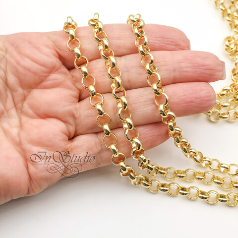 Цепочка позолота Ролло с круглыми звеньями 7 мм.