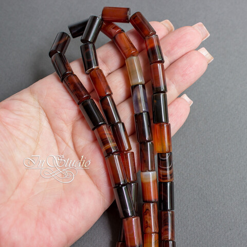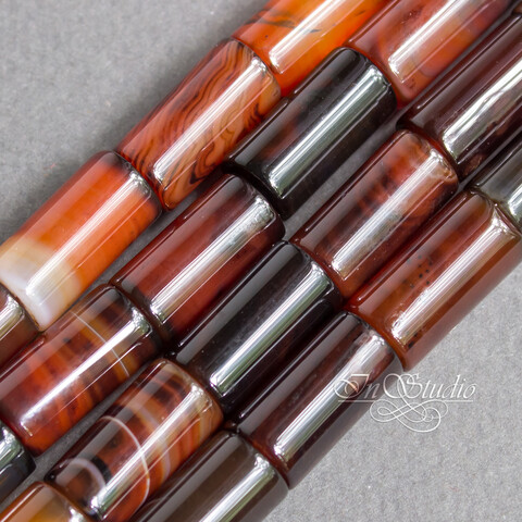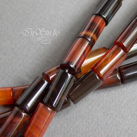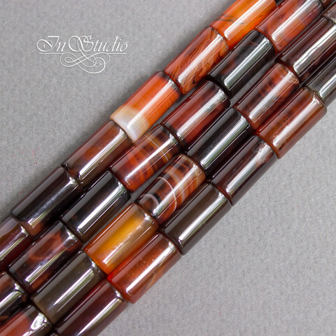 Агат коричнево рыжий 16х8 мм бусины трубочки цилиндры