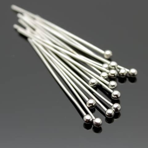Пины для бижутерии 30 мм родиевое покрытие с шариком