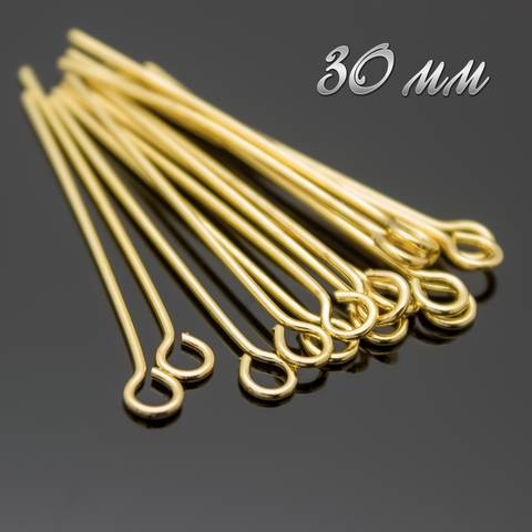 Пины бижутерные 30 мм позолоченное покрытие с петелькой
