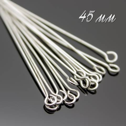 Пины для бижутерии 45 мм родированные с петелькой