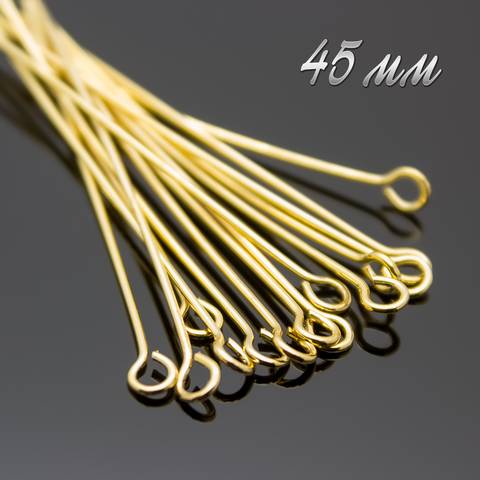 Пины для бижутерии 45 мм позолота с петелькой