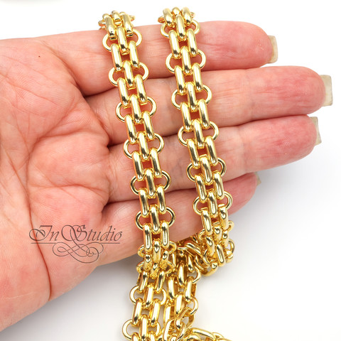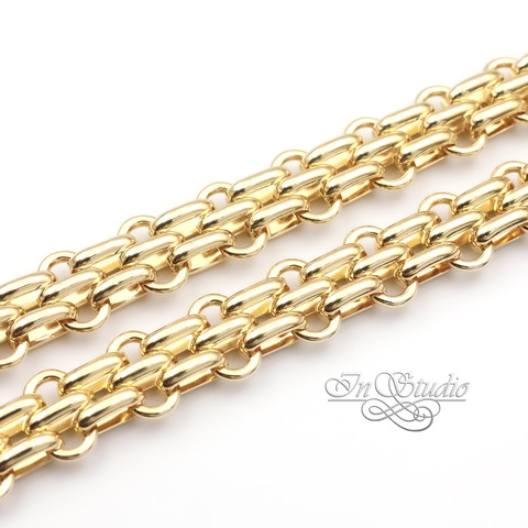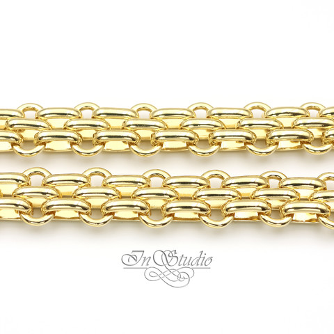 Декоративная широкая плоская цепочка Sanada. Позолота по латуни.