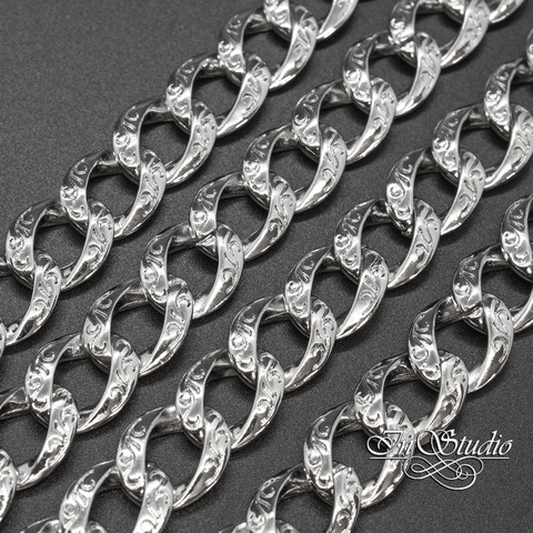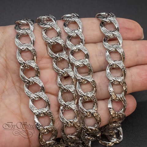 Крупная декоративная панцирная цепочка LARKIN с родиевым покрытием.