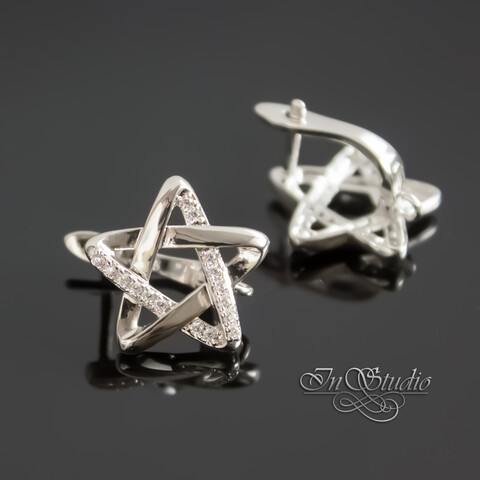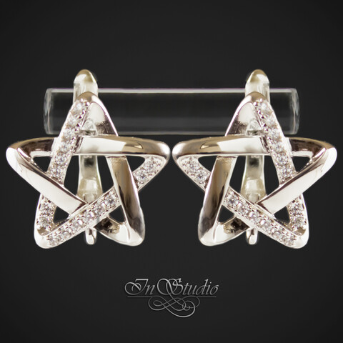 Выполнены в виде пятиконечных звездочек и украшены эффектными фианитами (цирконами).