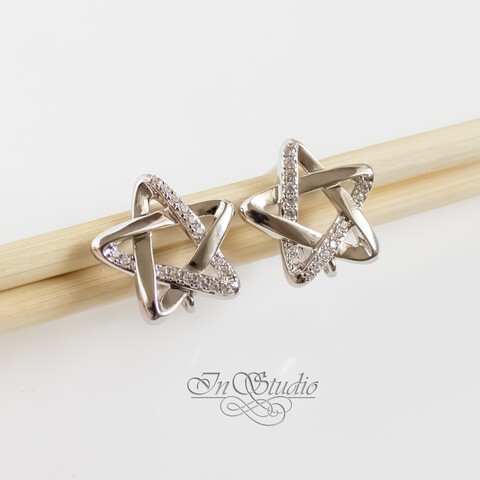 Швензы для серег ЗВЕЗДА родий с фианитами